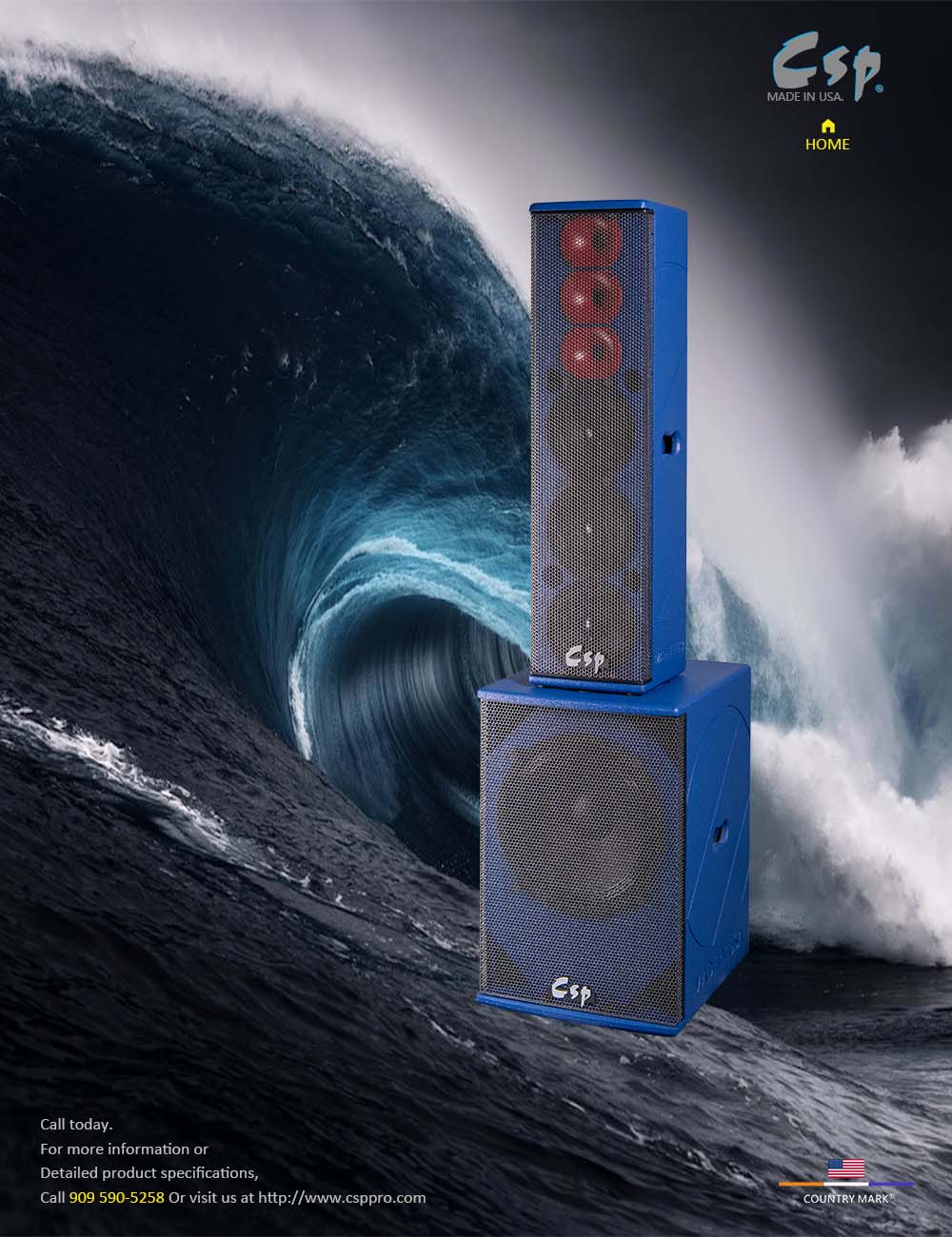 A unique technology that uses three 8" and 15" LV technical units to fully use characteristics of array and maximally improve the controlling of sound field. The effectiveness of the controlling of frequency by 15” units made by other companies which are displayed array does not exceed 500Hz. This cannot meet the need for live sound amplification. Csp engineers have used a unique production technology, combining with the characteristics of array sound field, to produce C6+C6B which can effectively control frequency rate as high as 1200Hz. It is the most successful product in the world that is designed using the characteristics of array sound field.